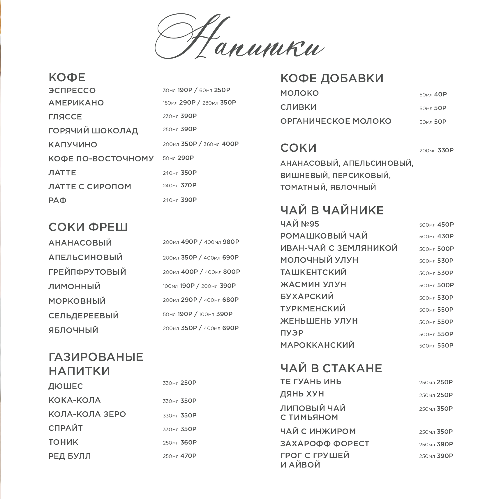 Уважаемые гости, обращаем ваше внимание, цены и ассортимент в ресторанах могут отличаться от представленных на сайте.